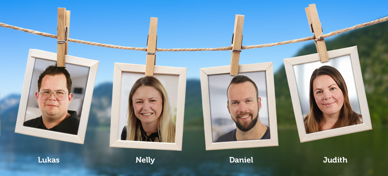 Mit unseren vier neuen Teammitgliedern setzen wir unseren Wachstumskurs fort. Wir freuen uns über die frische Energie, das vielfältige Know-how und das Engagement, mit dem Nelly, Lukas, Judith und Daniel unser Unternehmen bereichern.